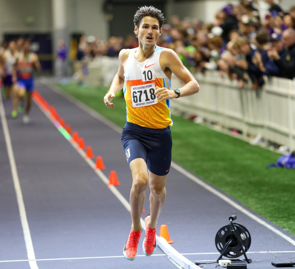 He dominated the race, winning by 5 seconds ahead of Sam Prakel (3:54.21). Myers' time is the fastest mile ever run in January. Other results at the meet included Maggi Congdon winning the mile/800m double with 4:27.77 and 2:00.93 and Stanford's Juliette Whittaker taking the 1000m in 2:37.54 over UW's Chloe Foerster's 2:37.79 (#2 and #3 on the NCAA all-time list). UW's Tyler Bilyard won the men's 1000m in 2:18.34 (#4 NCAA all-time).