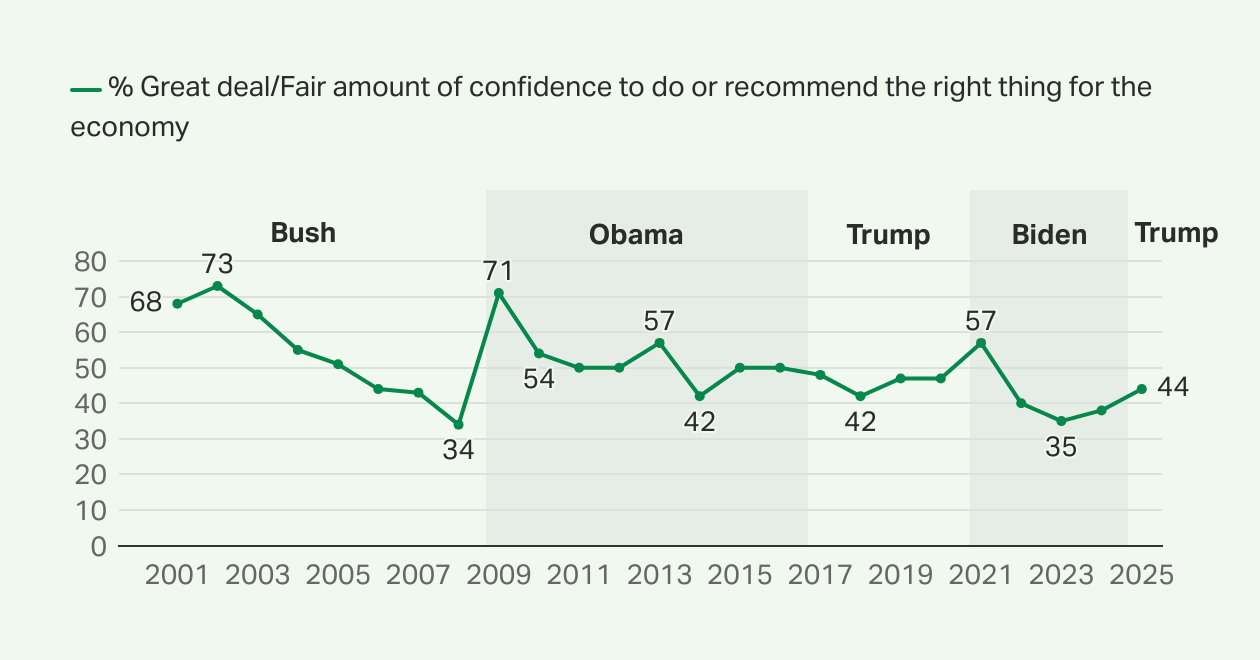 New - First quarter job approval 🔴 Trump (2025) 45% 🔵 Obama (2009) 63% 🔴 Bush (2001) 58% 🔵 Biden (2021) 56% 🔴 Trump (2017) 41%