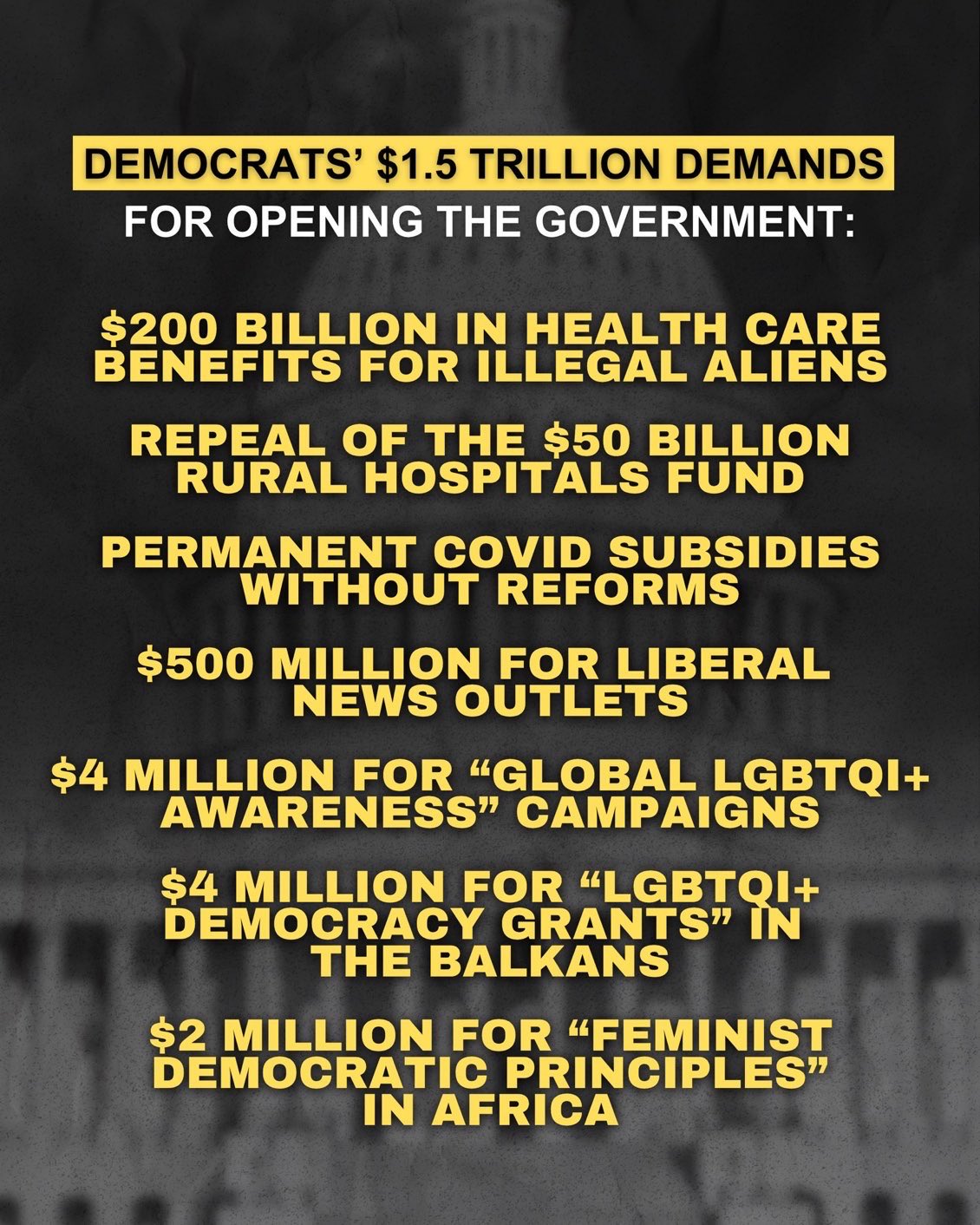 We have 53 GOP yes votes but we need 60 votes to reopen the government. C'mon dems, this your fault.