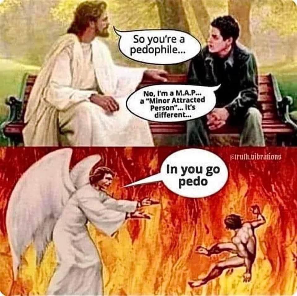 Oh yeah. And you seem to also be giving Mango Mussolini a pass in your quest to throw all Pedos into the burning fire of Hades. (Sheol for you Old Testament fans).
