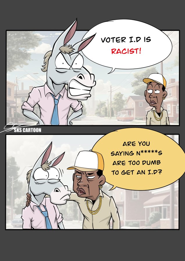 According to Democrats (who act like slave owners) black people don’t know what computers are, they can’t get an ID, they can’t make photocopies of an ID (Kamala said this) and they MUST vote for Democrats or else they ain't black.