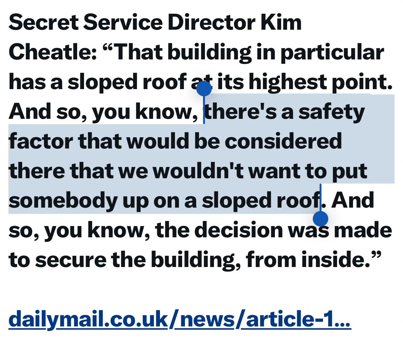 Ah yes, the sloped roof excuse from the DEI/Woke Secret Service Director.