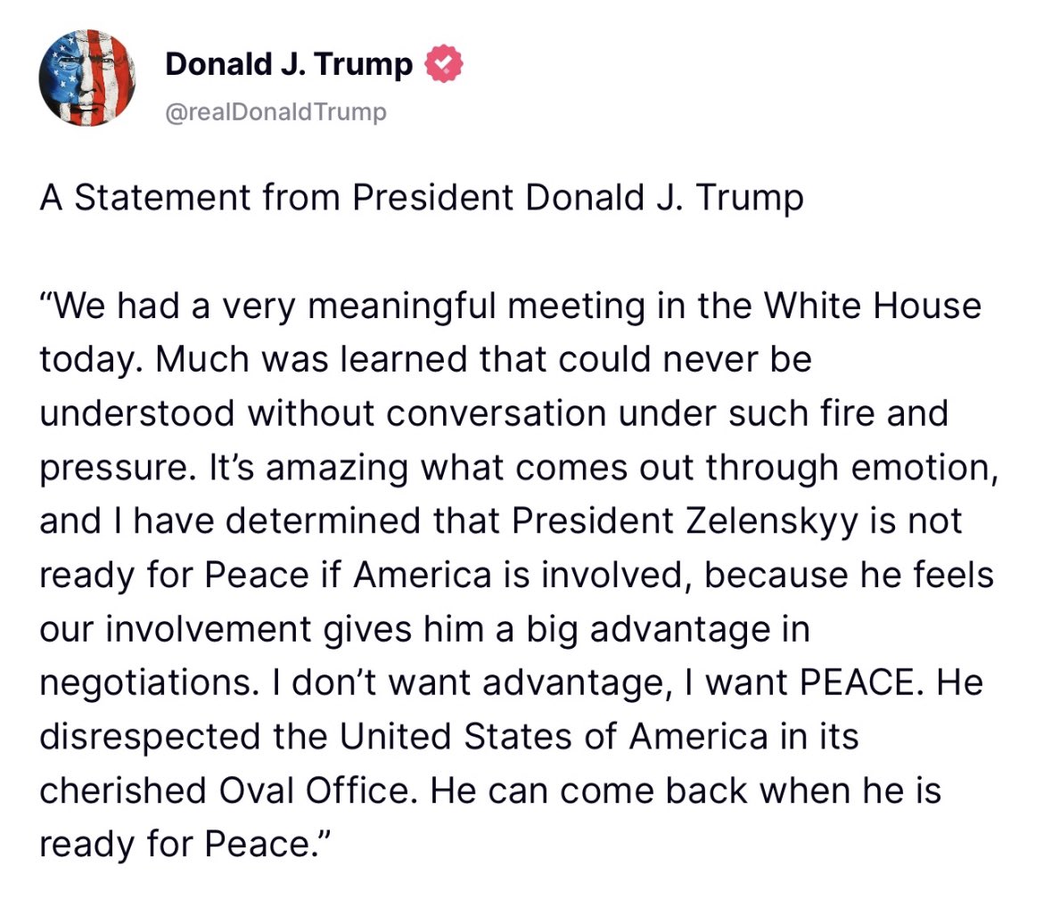 The meeting shows how weak Trump is. Facing the president of Ukraine with many people beside him while Zelensky is alone, and in a desperate situation where Zelensky's country is under attack. This is plain weak bullying. Trump is weak and seems to suffer from dementia as well