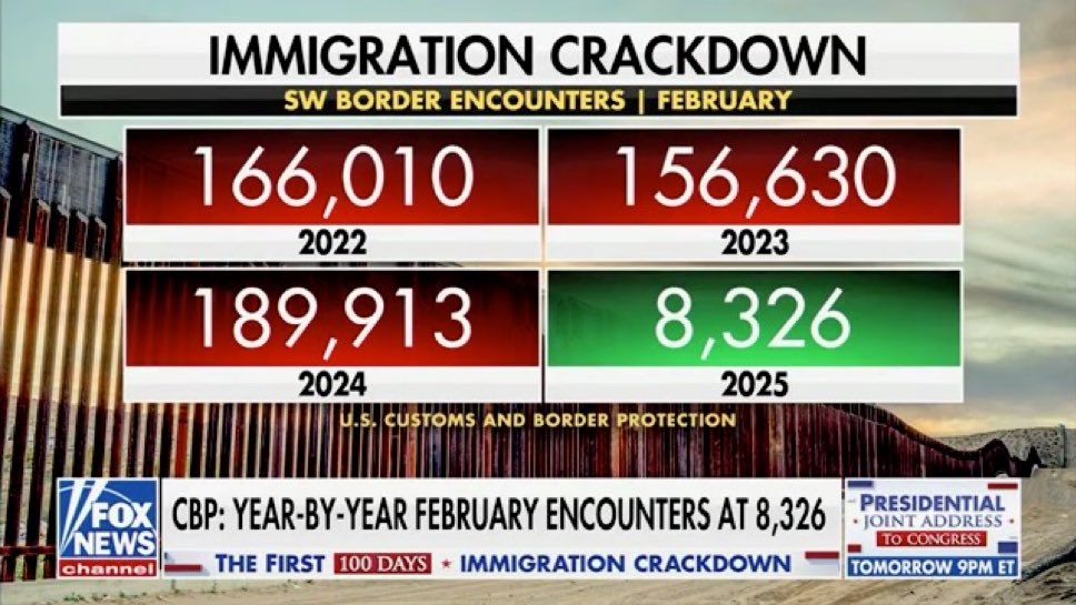 Latest poll is good news for Trump and awful for Democrats. The president has a 52% job rating. His plans to end government waste and deport criminal illegal aliens are both popular.