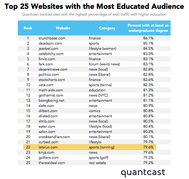 http://www.letsrun.com/wp-content/uploads/2017/07/letsrun-smart.pngIt turns out that the visitors at DEADSPIN are a lot more educated than the visitors at LetsRun.com.