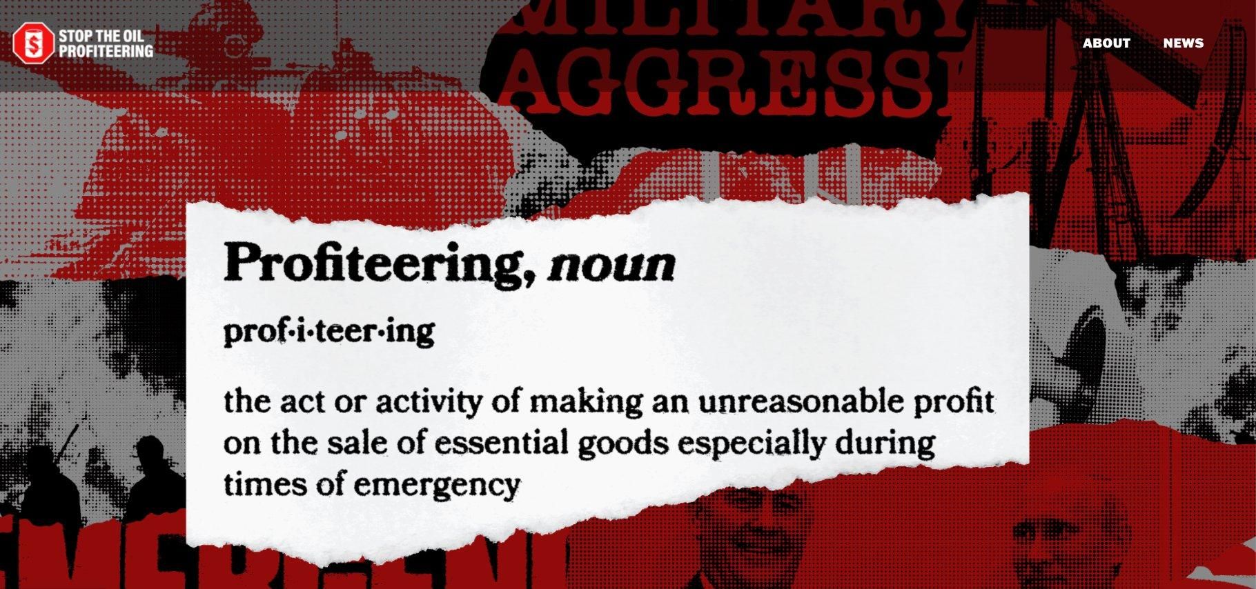"Companies like Exxon, Chevron, Shell, and BP are trying to profit from the war in Ukraine, driving up gas prices in order to fill their own pockets," said Jamie Henn of the new Stop the Oil Profiteering campaign.