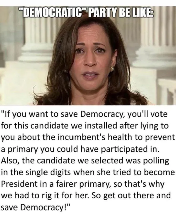 Commie Kamala is just a representative puppet for the corrupt party currently in power. If that's what you clowns desire, go ahead and vote for it. You will be complicit with the deterioration of America and should be fined/imprisoned for that atrocity.